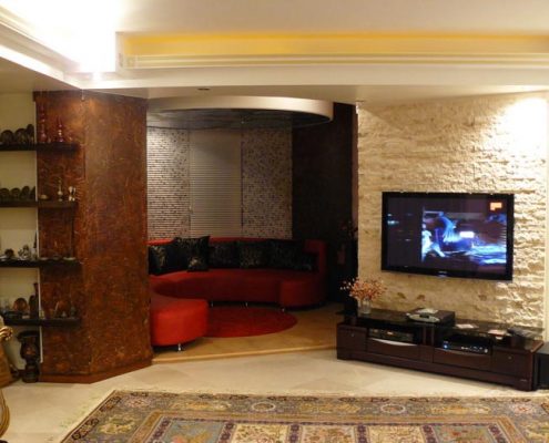 دکوراسیون دیوار ال سی دی چوبی و کناف